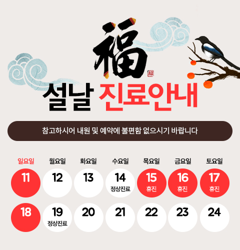 2018년 설연휴 진료안내 페이지 정보 작성자 봄날애 작성일18-02-06 10:27 조회16,714회 댓글0건 관련링크 이전글 다음글 목록 본문 답변목록 등록된 답변이 없습니다. 이전글 다음글 목록